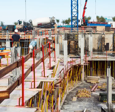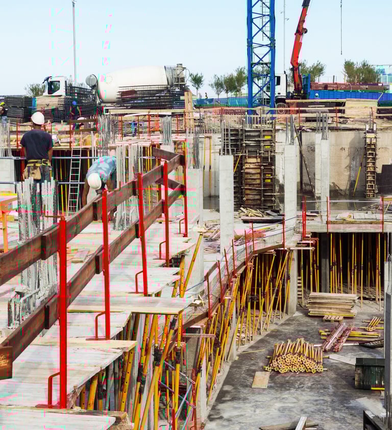 Repetitive floor slabs, columns, and cantilevered balconies for a mid‑rise apartment block, executed with standardized shuttering, organized reinforcement placement, and regular survey checks to deliver uniform floor‑to‑floor quality and predictable construction cycles.
