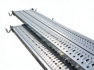 Corrosion‑proof steel walkway planks and platforms with anti‑slip surfaces for safe movement at height.