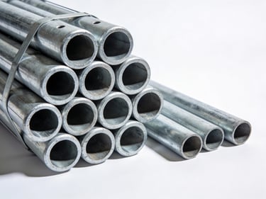 Galvanized steel scaffolding pipes available in standard diameters and lengths for versatile site use.